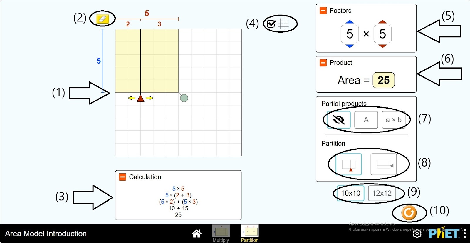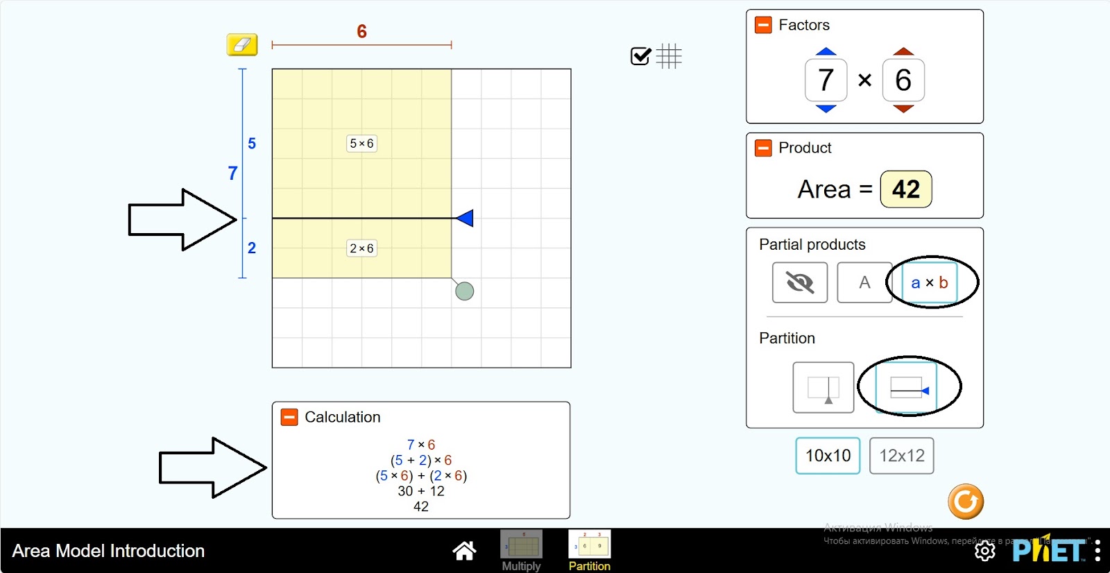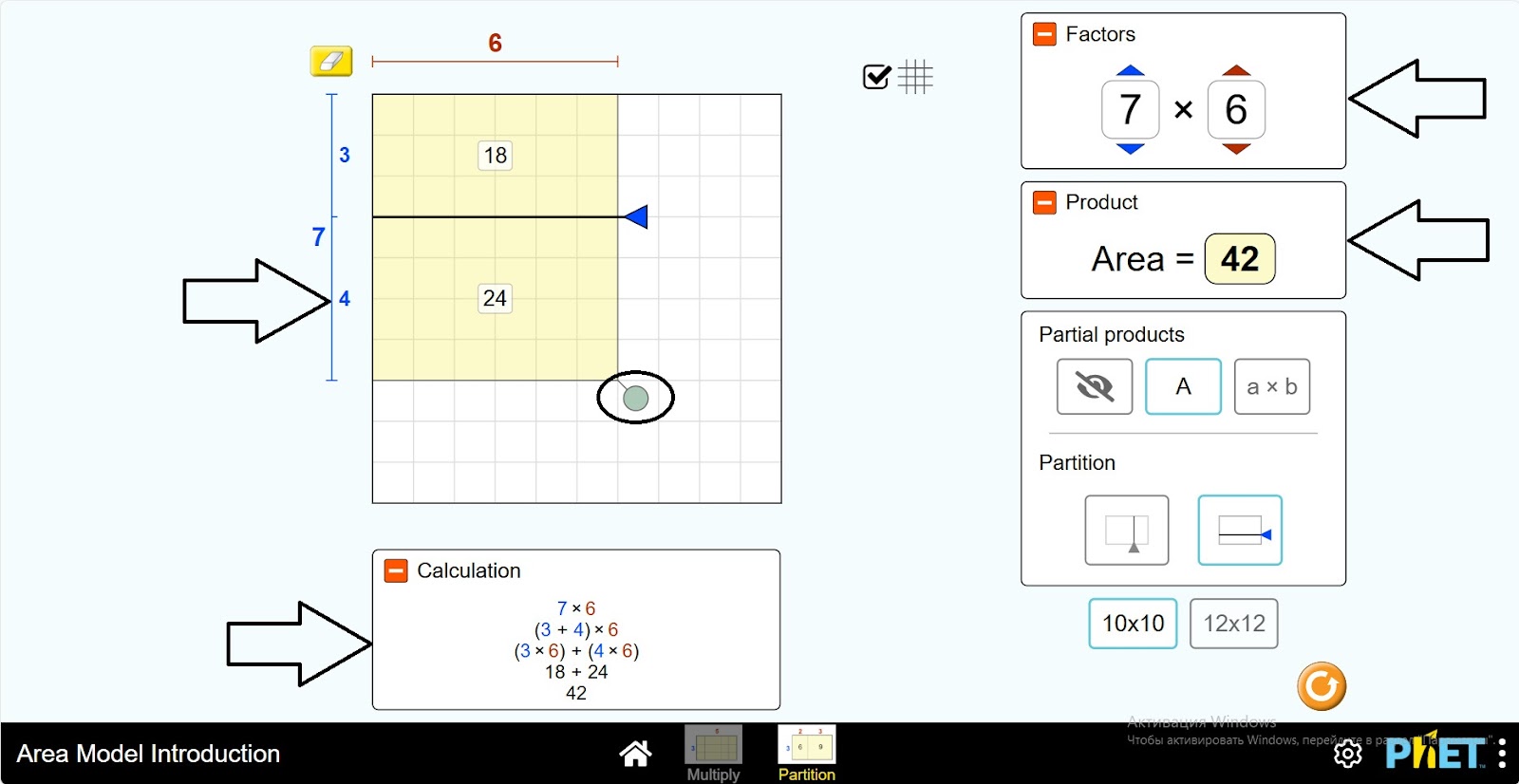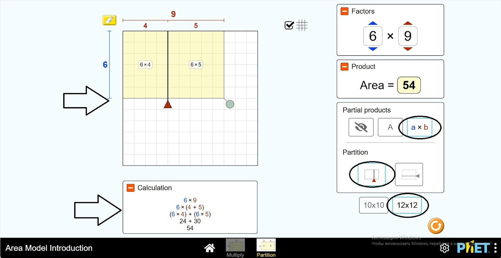 Шаг 1. Запустите симуляцию: вам будет предложено 2 различных режима: “Multiply” и “Partition”. Вы будете работать над этим экспериментом в разделе “Partition”. Откройте раздел “Partition”.