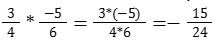 Умножение: При умножении рациональных чисел с разными знаками (например, + и — или — и +), перемножаем их числители и знаменатели. Знак результата будет отрицательным. Например: