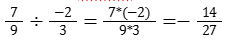 Деление: При делении рациональных чисел с разными знаками (например, + и — или — и +), делим числитель первого числа на числитель второго, а знаменатель первого — на знаменатель второго. Знак результата будет отрицательным. Например:
