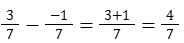 Вычитание: При вычитании рациональных чисел с разными знаками (например, + и — или — и +), вычитаем их числители и сохраняем знак первого числа. Например:
