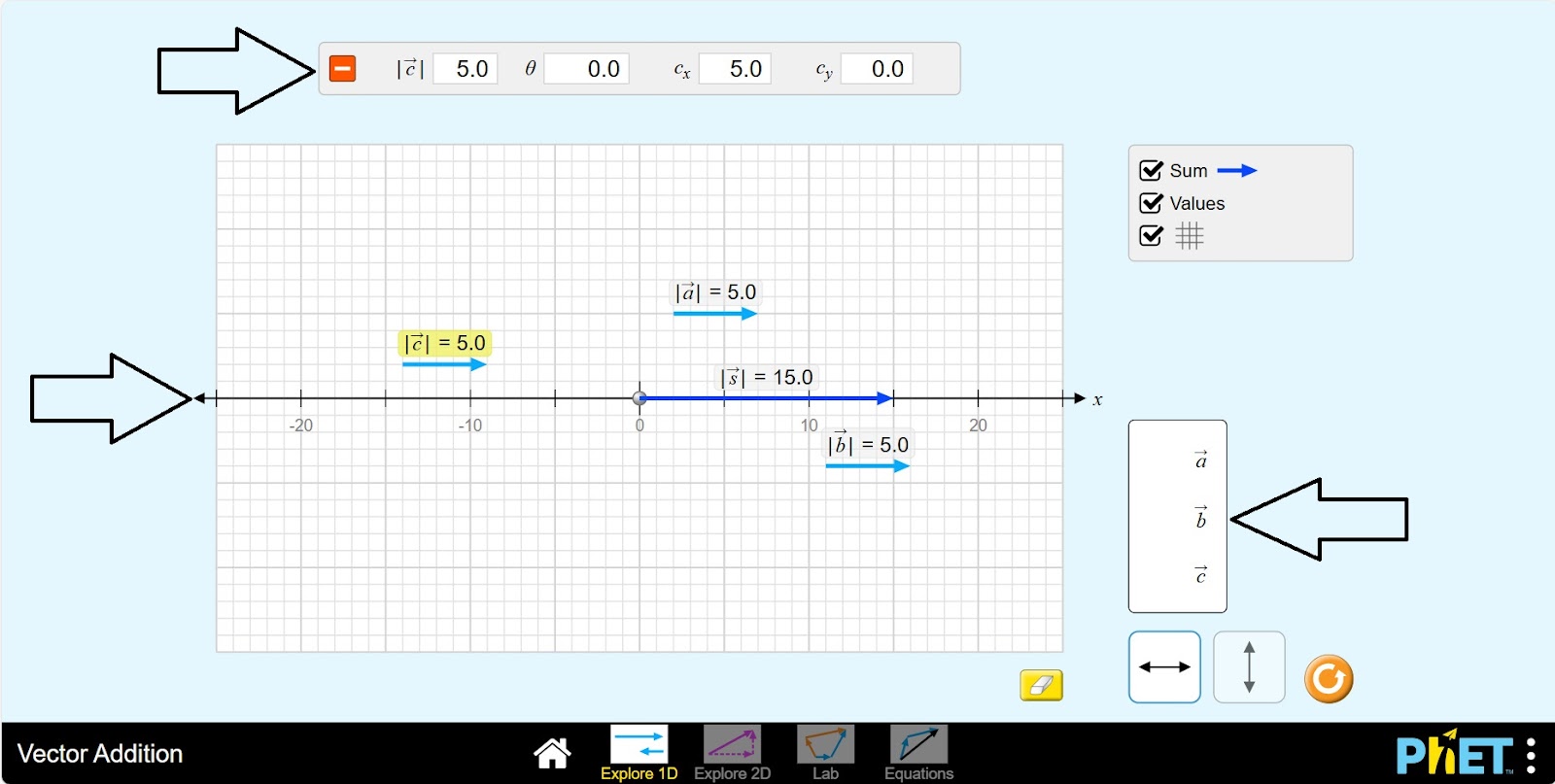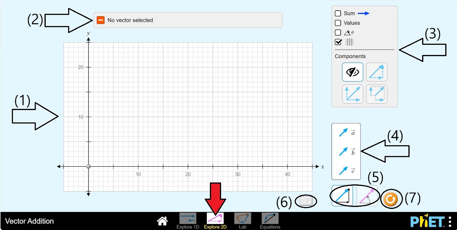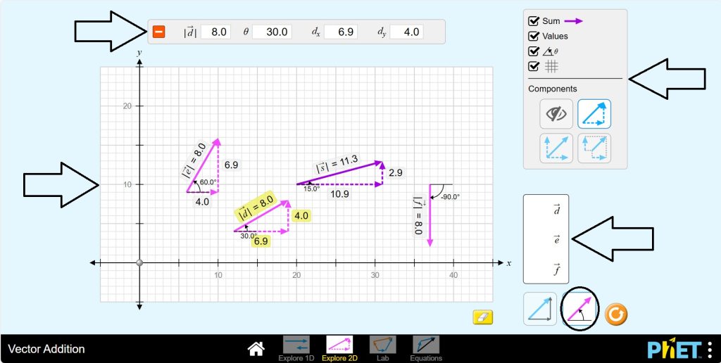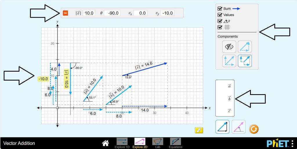 Vector Addition by PhET Interactive Simulations, University of Colorado Boulder, licensed under CC-BY-4.0 (https://phet.colorado.edu)