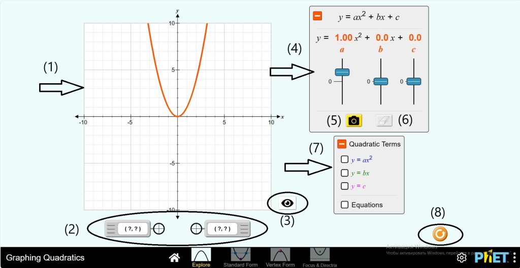 Симулятор Graphing Quadratics — ценный инструмент для обучения учащихся графикам квадратичных функций. Симулятор стал интерактивным и визуально полезным, предлагая различные инструменты для изучения графиков, такие как отображение точек, отображение уравнений и сохранение графиков.